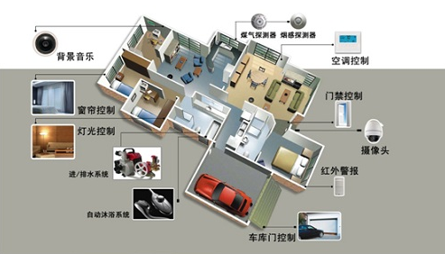 家庭自動化系指利用微處理電子技術,來集成或控制家中的電子電器產品或系統(tǒng),例如:照明燈、咖啡爐、電腦設備、保安系統(tǒng)、暖氣及冷氣系統(tǒng)、視訊及音響系統(tǒng)等。家庭自動化系統(tǒng)主要是以一個中央微處理機(Central Processor Unit,CPU)接收來自相關電子電器產品(外界環(huán)境因素的變化,如太陽初升或西落等所造成的光線變化等)的訊息后,再以既定的程序發(fā)送適當的信息給其它電子電器產品。中央微處理機必須透過許多界面來控制家中的電器產品,這些界面可以是鍵盤,也可以是觸摸式熒幕、按鈕、電腦、電話機、遙控器等;消費者可發(fā)送信號至中央微處理機,或接收來自中央微處理機的訊號。