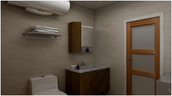 因?yàn)闃I(yè)主不希望空間太冷,衛(wèi)生間在選擇瓷磚的時(shí)候選用了暖色系瓷磚,空間不是很大,所以沒(méi)有做淋浴隔斷,洗衣機(jī)放到門(mén)后,一進(jìn)門(mén)看到的是洗手臺(tái),因?yàn)橄词峙_(tái)的使用頻率要遠(yuǎn)高于洗衣機(jī),這樣的布局最為方便。衛(wèi)生間的門(mén)一定要選擇金屬材質(zhì),不能用木門(mén)。