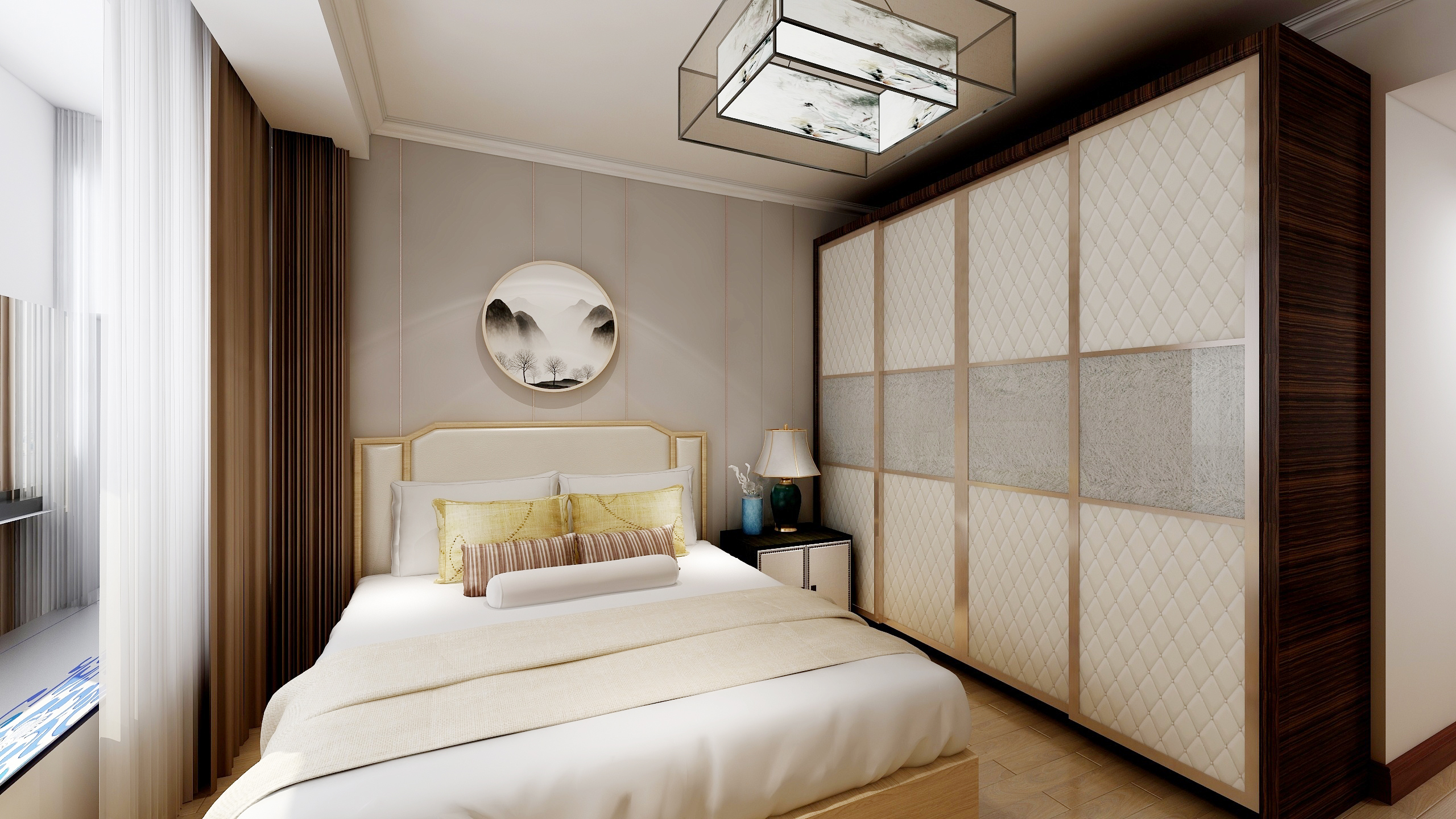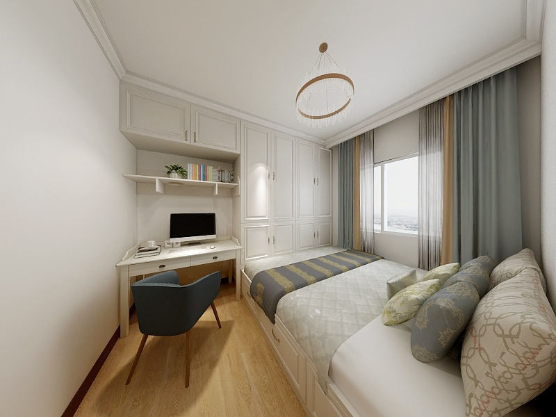 臨窗而坐,紗簾半合。安享屬于自己的時(shí)光,整個(gè)臥室區(qū)域素雅大方,整體以暖色調(diào)為主,柔和的色彩使人隨意、放松的心情駐留在房間里,使得緊湊的空間具有視覺延伸和放大空間的效果。床頭燈總是在需要它的時(shí)候暖暖的陪伴在主人的身邊。