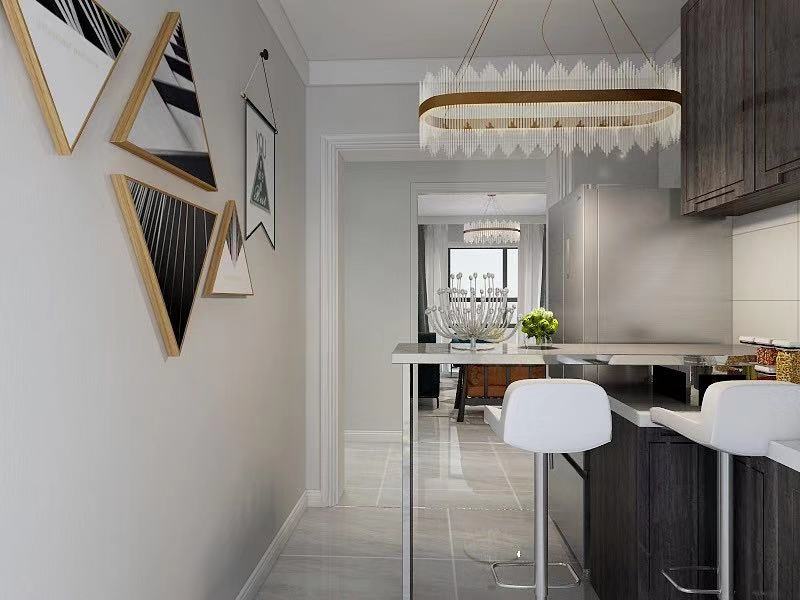 1. 廚房面積不算大,但是客戶想把冰箱放餐廳,經(jīng)過模型布置方案設計決定把冰箱放到餐廳,做個吧臺,這樣寬敞明亮,客廳空間大,隔出一個生活陽臺所以客廳布局比較簡單,除了生活中必備的一些東西,沒有多余的布置。從而使得客廳整體空間更簡潔大氣明亮。