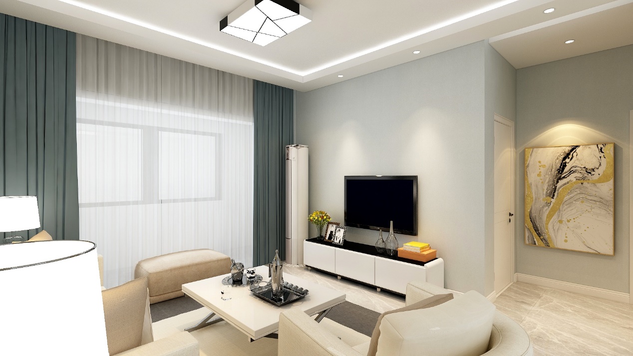 這套現(xiàn)代簡(jiǎn)約的客廳設(shè)計(jì)以色為主色,運(yùn)用淡藍(lán)色的墻漆和米白色的沙發(fā)搭配,讓客廳充滿現(xiàn)代的氣息,十分的簡(jiǎn)潔時(shí)尚。米白色的沙發(fā)搭配灰色的地磚和藍(lán)色的窗簾及淡藍(lán)色的墻漆,讓簡(jiǎn)約的客廳充滿現(xiàn)代時(shí)尚溫馨的氣息,所以說現(xiàn)代簡(jiǎn)約并不是過于強(qiáng)調(diào)簡(jiǎn)約的設(shè)計(jì),而是簡(jiǎn)約和實(shí)用美觀的結(jié)合。
