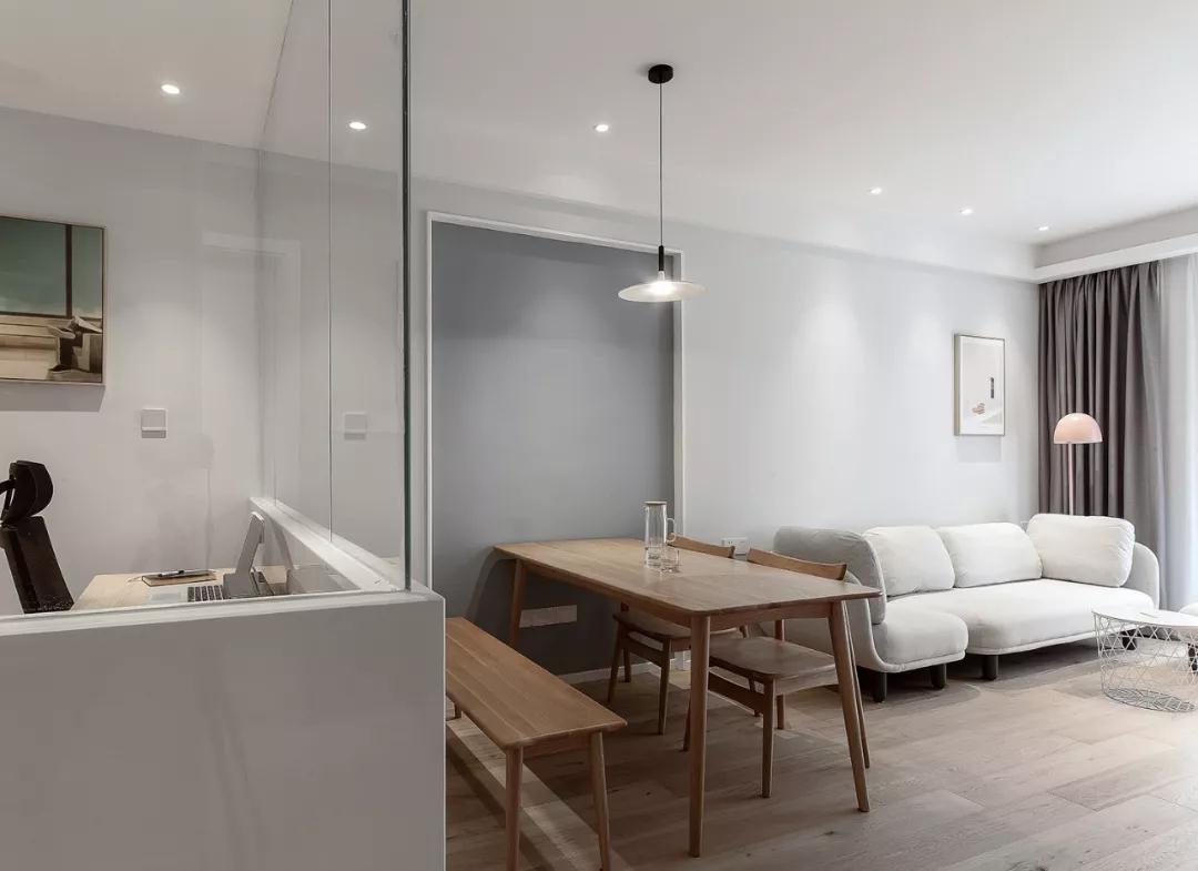 客餐廳以灰色和白色為主調(diào),大面積的玻璃窗帶來(lái)良好的采光性,整體空間干凈明亮又舒適。