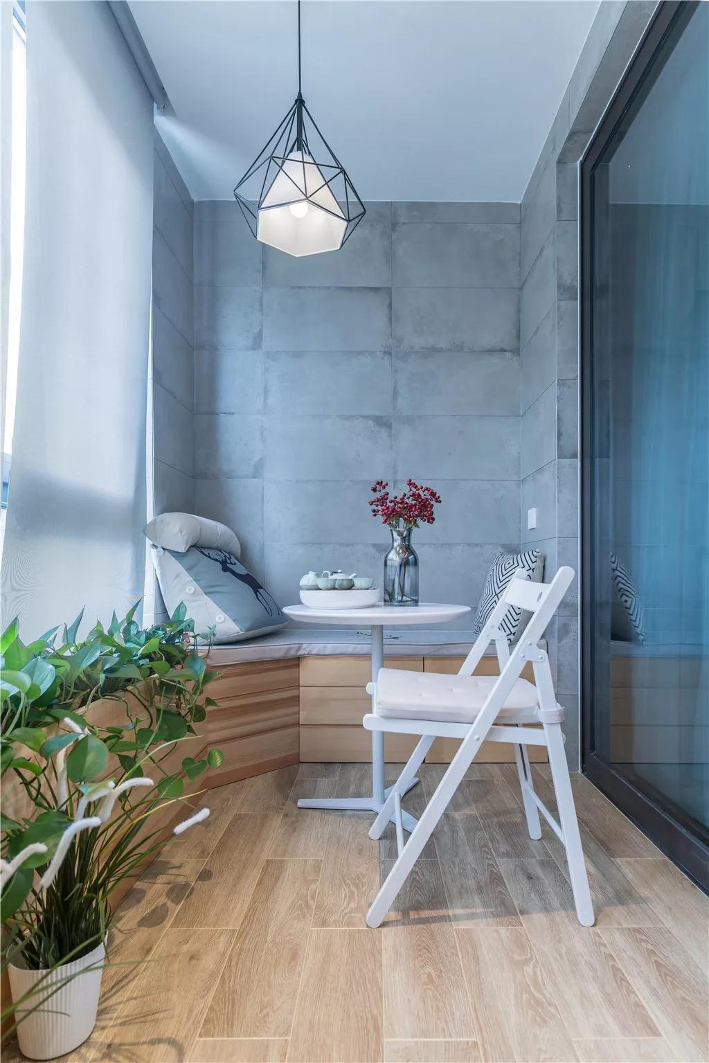 陽(yáng)臺(tái)靠窗裝上透光的拉簾來(lái)緩和刺眼的陽(yáng)光,卡座加休閑桌椅和綠植,打造了個(gè)十分寫(xiě)意自在的休閑空間。
