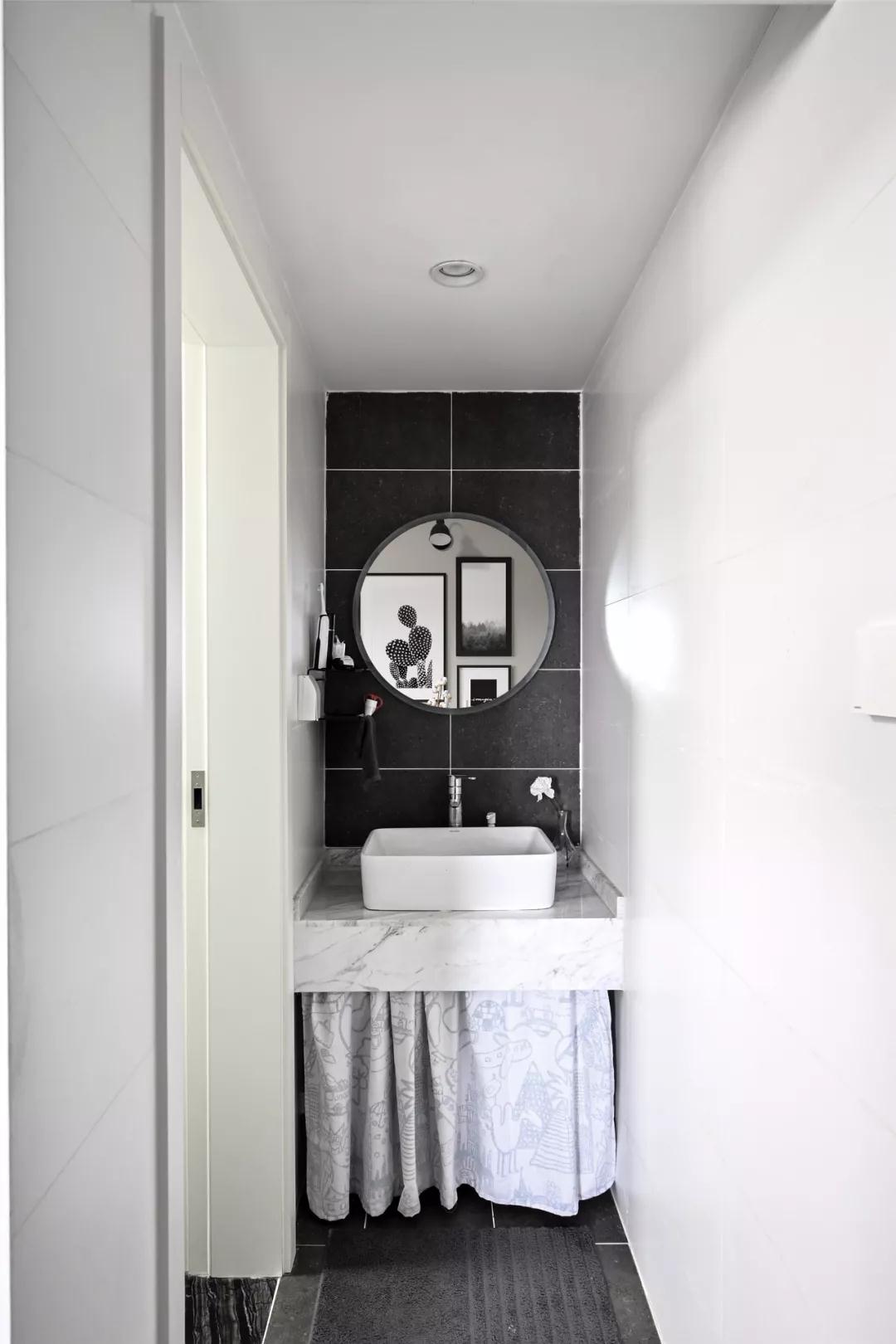 衛(wèi)生間采用了干濕分離的設計,簡約而不簡單。采用簾子取代傳統(tǒng)的柜體,使空間看起來柔和了很多。